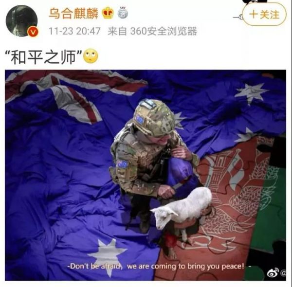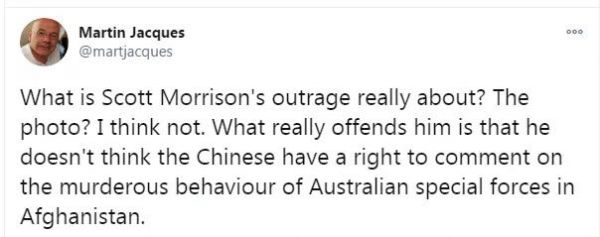 “莫里森的憤怒到底是什么?‘照片’?我想不是。真正令他惱怒的是,他認為中國人無權對澳大利亞特種部隊在阿富汗的謀殺行為發表評論?!?/font>