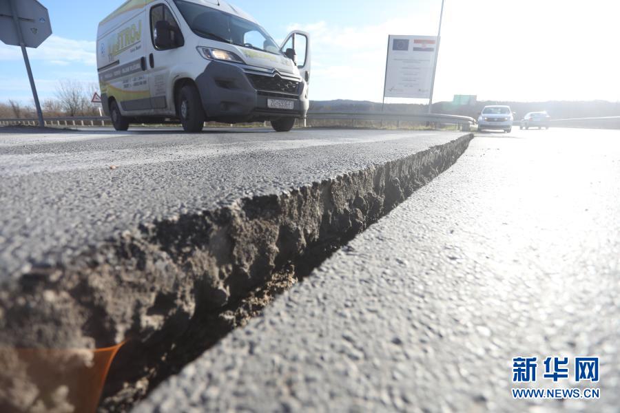 這是12月29日在克羅地亞中部城市錫薩克拍攝的地震后開裂的路面。新華社發(fā)(Pixsell圖片社 蒂羅尼攝)