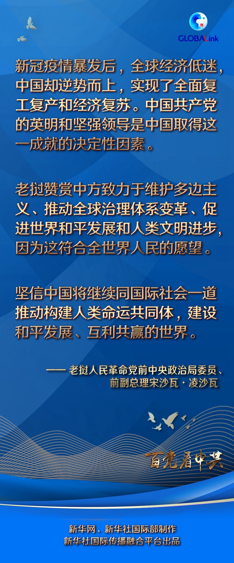 宋沙瓦認為,全面建成小康社會是中國共產黨帶領中國人民推進社會主義事業的新起點。老方贊同中國共產黨始終堅持以人民為中心的執政理念,這也是老撾人民革命黨所堅持的。