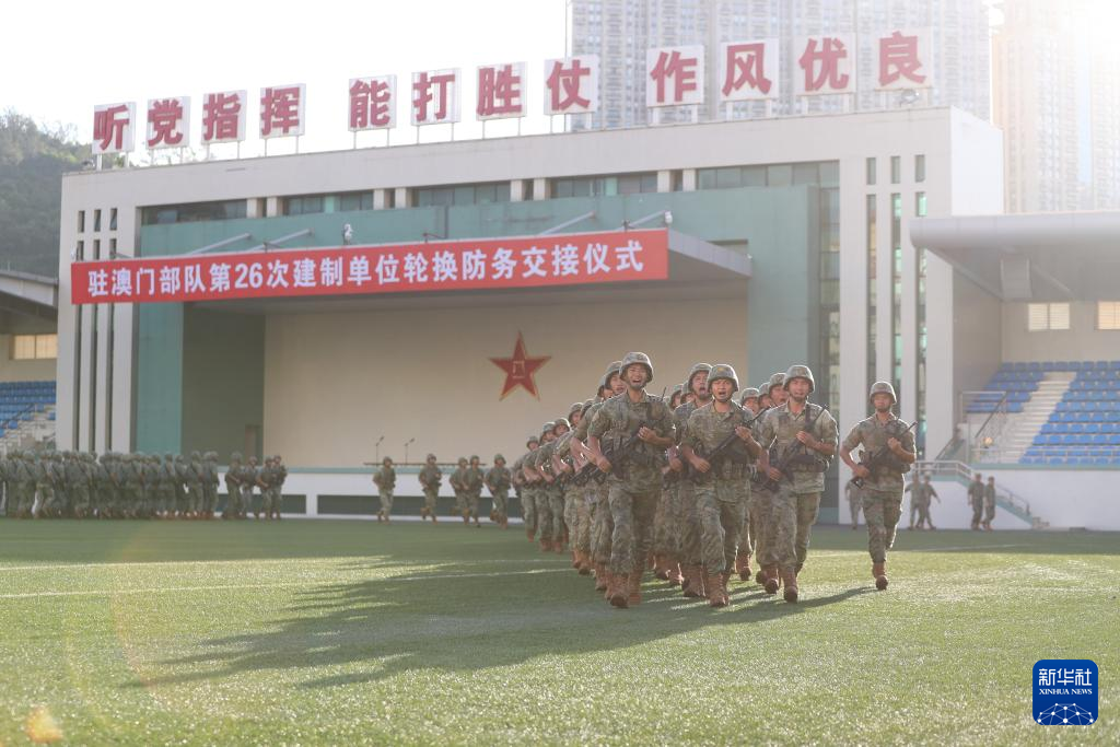 新华社澳门8月22日电 根据《中华人民共和国澳门特别行政区驻军法》和中央军委命令,中国人民解放军驻澳门部队于22日组织了进驻澳门以来第26次建制单位轮换。轮换行动中,驻澳门部队严格遵守澳门特别行政区法律法规,组织有力、严整有序,全程安全顺利,展现了过硬的军事素质和优良作风。