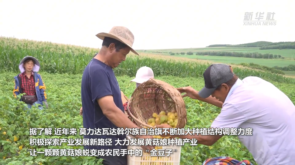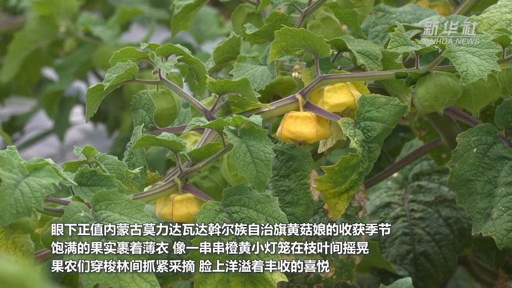 眼下,在内蒙古莫力达瓦达斡尔族自治旗,正值黄菇娘的收获季节。一颗颗饱满的果实裹着薄衣,像一串串橙黄小灯笼在枝叶间摇晃。果农们穿梭林间抓紧采摘,脸上洋溢着丰收的喜悦。