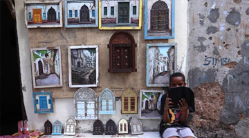 3月1日,在保加利亚首都索非亚,市民在佩戴“三月花”的雕塑旁选购“三月花”。