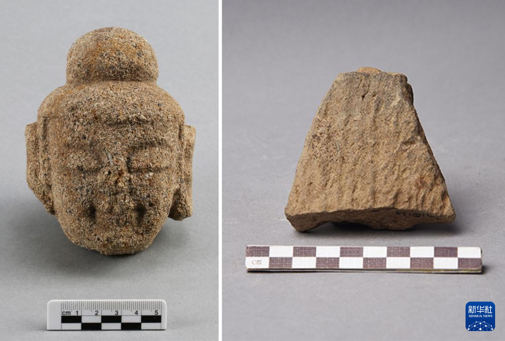 吉林珲春古城村1号寺庙址出土的佛像残片(拼版资料照片)。
