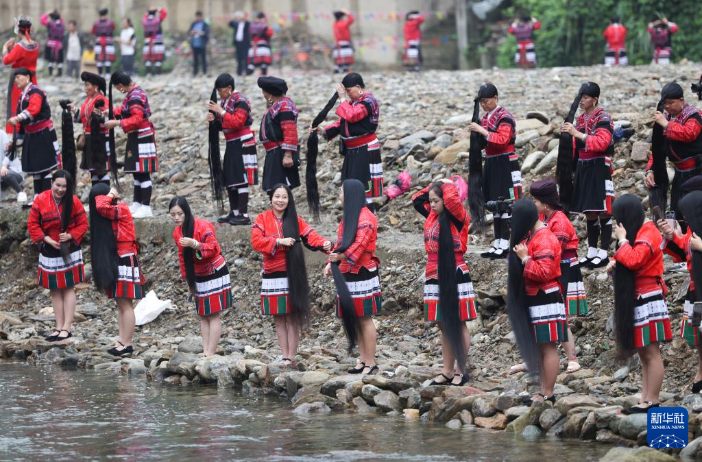 当日是农历三月初三,广西桂林市龙胜各族自治县黄洛瑶寨举行“三月三龙脊长发节”活动,吸引游客前来参观游览。黄洛瑶寨的红瑶族妇女有世代相传的蓄发习俗,平均头发长度达1.7米,最长的有2.72米。