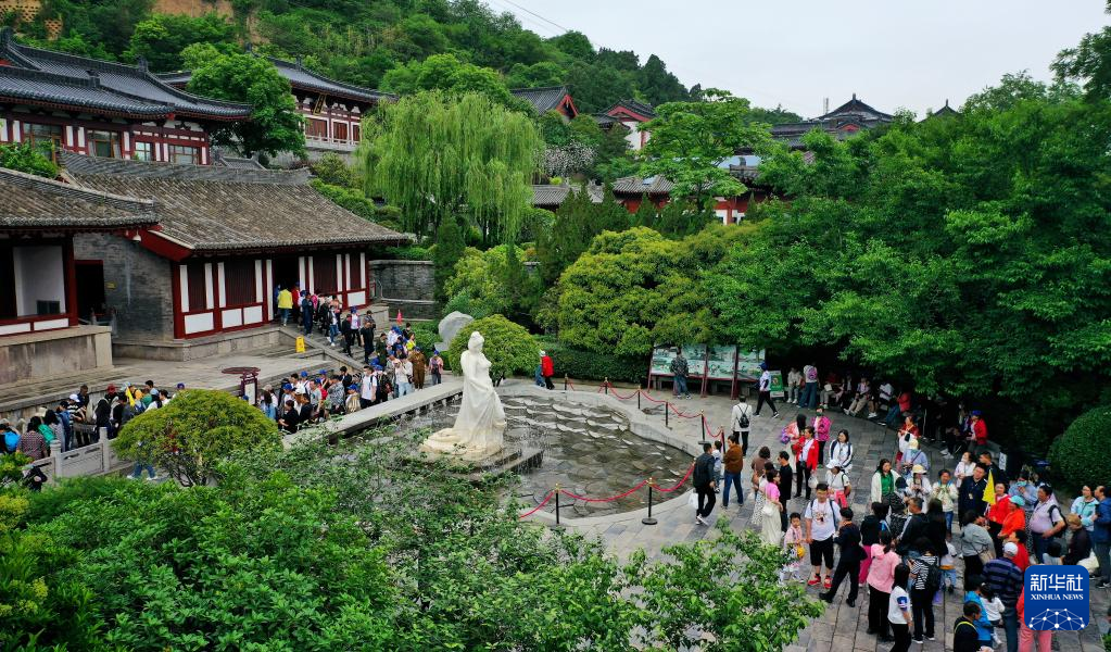 游客在西安华清宫景区尚食汤参观游览(5月5日摄)。