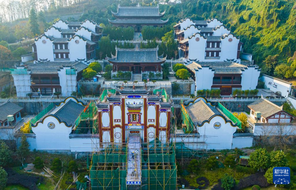 12月24日在秭归县拍摄的修葺一新的屈原祠(无人机照片)。