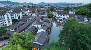 位于扬州江都区的邵伯古镇(无人机照片,4月25日摄)。