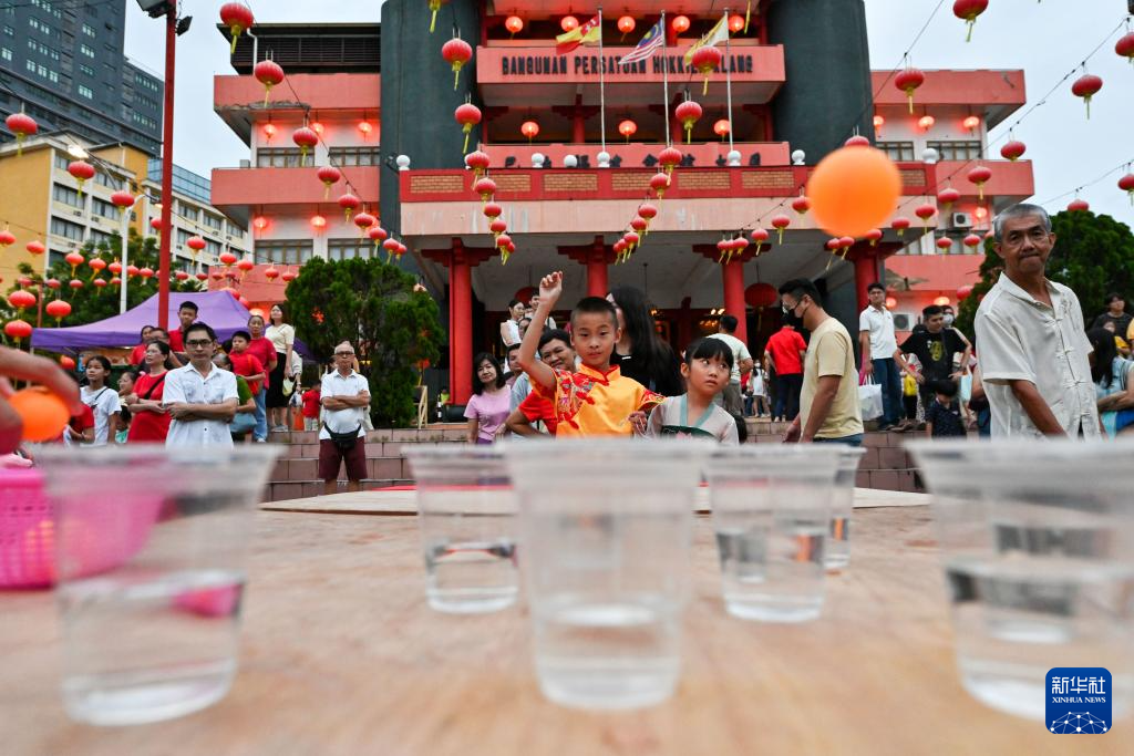 9月17日,在马来西亚雪兰莪州巴生,民众参加投球游戏庆祝中秋。