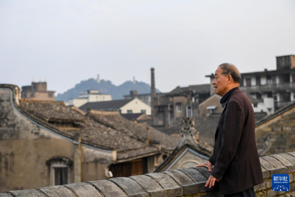 11月22日,黄大树站在浙江临海台州府城墙上远眺。