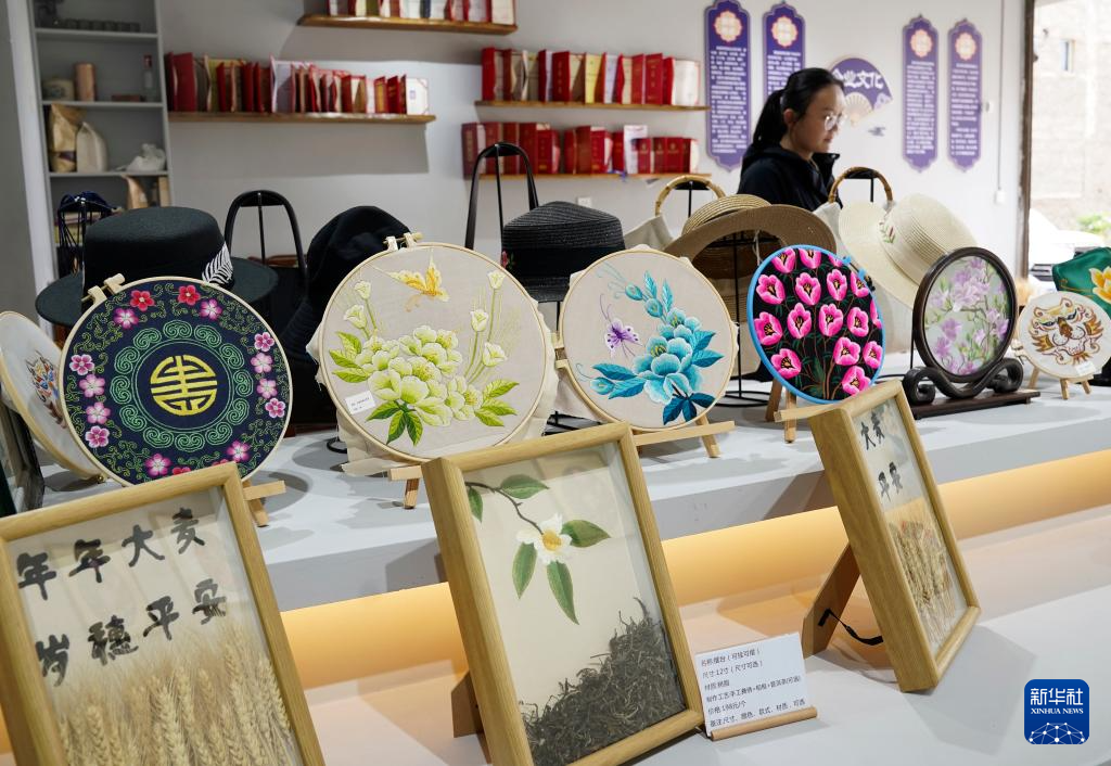 1月6日,游客在楚雄州南华县彝绣展馆挑选彝绣产品。