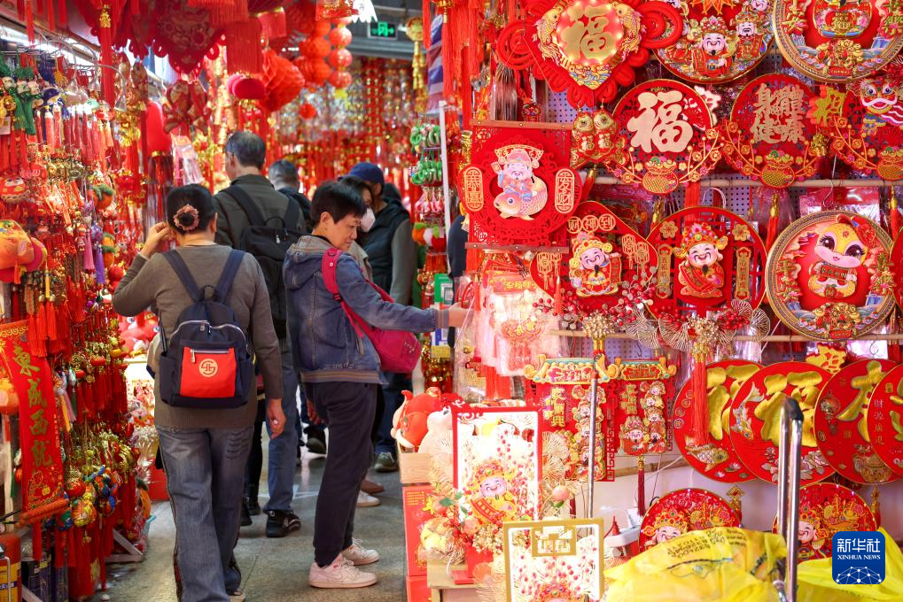 春节临近,年味渐浓,大街小巷张灯结彩,热闹的集市吸引人们前来选购年货。