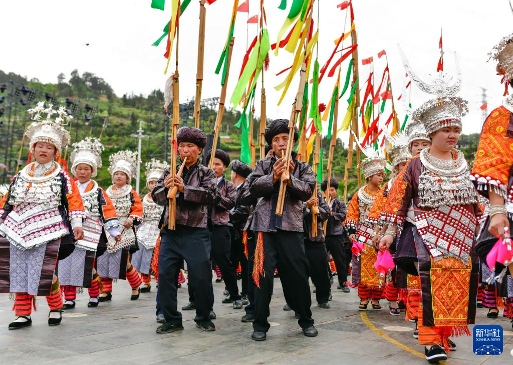 当日,在贵州省黔东南苗族侗族自治州台江县,万余名苗族群众身着盛装,庆祝一年一度的姊妹节。“苗族姊妹节”是贵州台江县苗族同胞的传统节日,2006年被列入第一批国家级非物质文化遗产名录。