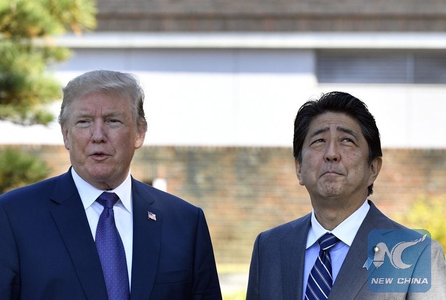 WASHINGTON, Feb. 2 (Xinhua) -- U.S. President Donald Trump on Friday discussed over phone with Japanese Prime Minister Shinzo Abe the situation on the Korean Peninsula and the relocation of a U.S. base in Japan.