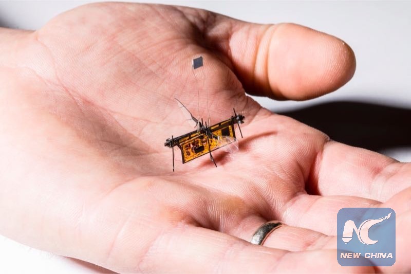 The robot called "RoboFly" with independent flaps used a tiny onboard circuit that converts the laser energy into enough electricity to operate its wings, according to a news release of the university on Tuesday.