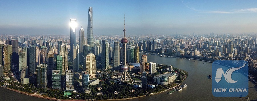 Photo taken on Jun. 21, 2018 shows scenery of the Lujiazui area in Pudong of Shanghai, east China. (Xinhua/Yin Gang)