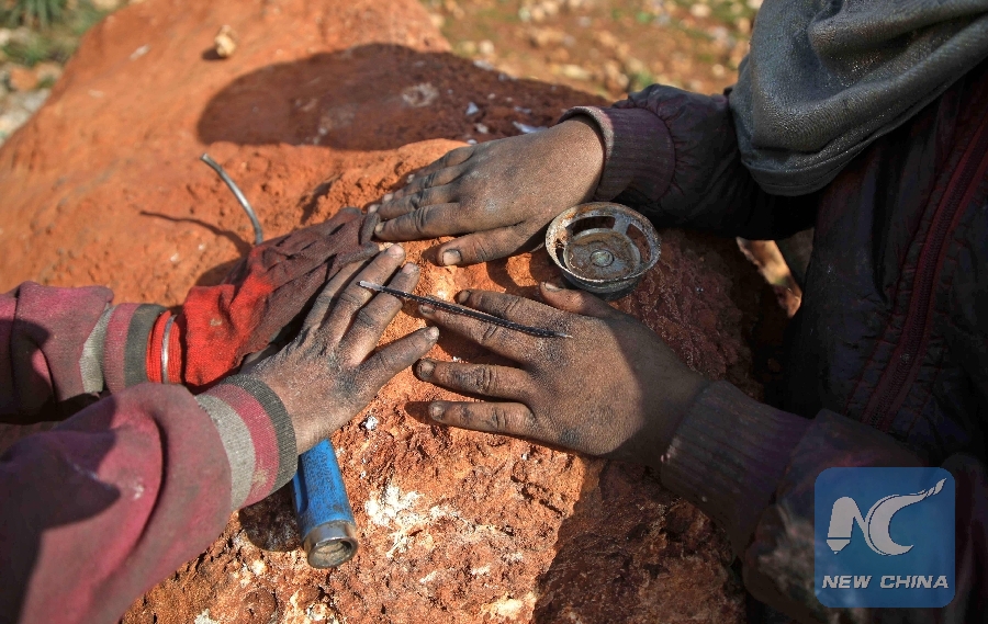 Displaced Syrian girls display their dirty hands at a landfill outside a camp in Kafr Lusin near the border with Turkey in Idlib province in northwestern Syria, on Jan. 29, 2019. (Xinhua/AFP)
