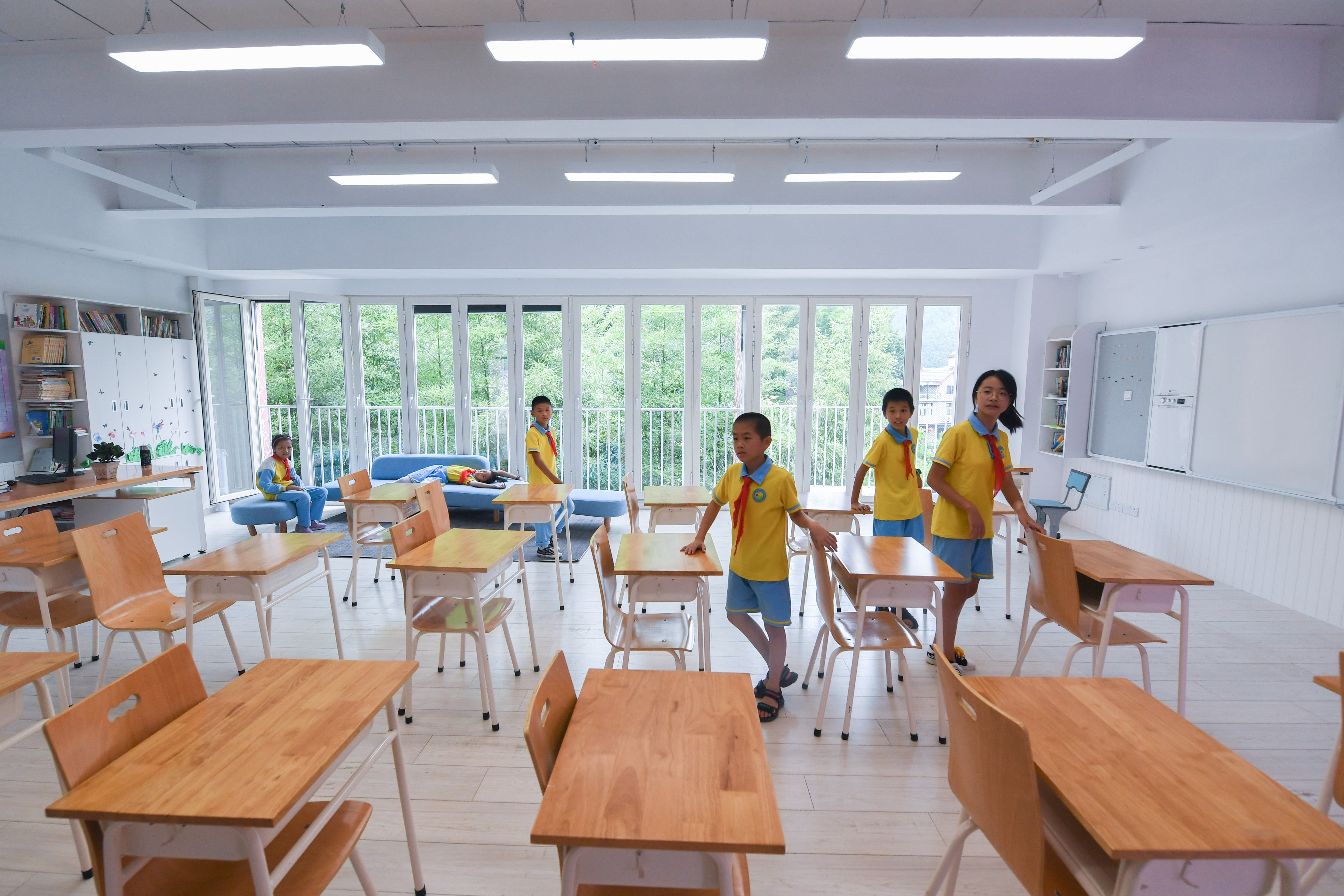 Students have fun in Central Primary School of Fuwen Township at Fuwen Village of Chun'an County in Hangzhou, capital of east China's Zhejiang Province, Aug. 31, 2019.(Xinhua/Xu Yu)