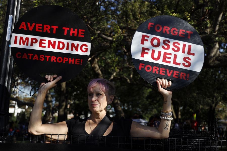 A man participates in a strike to call attention to climate change in New York, the United States, on Sept. 20, 2019. (Xinhua/Li Muzi)