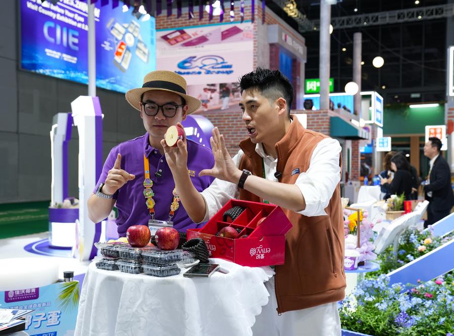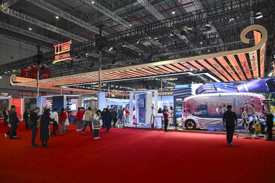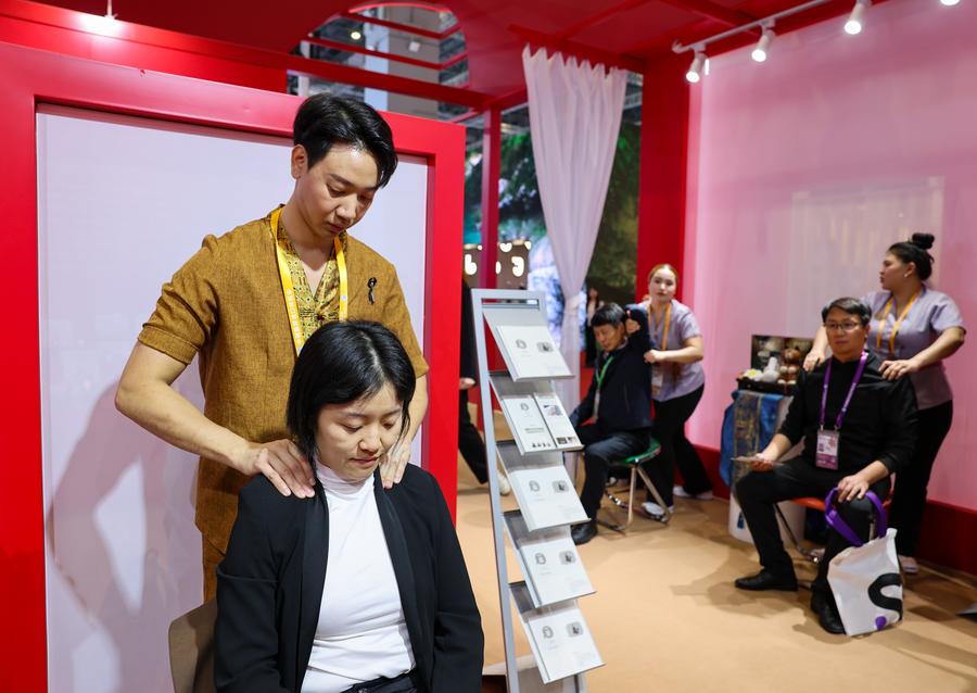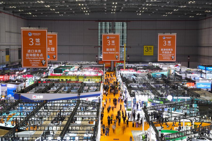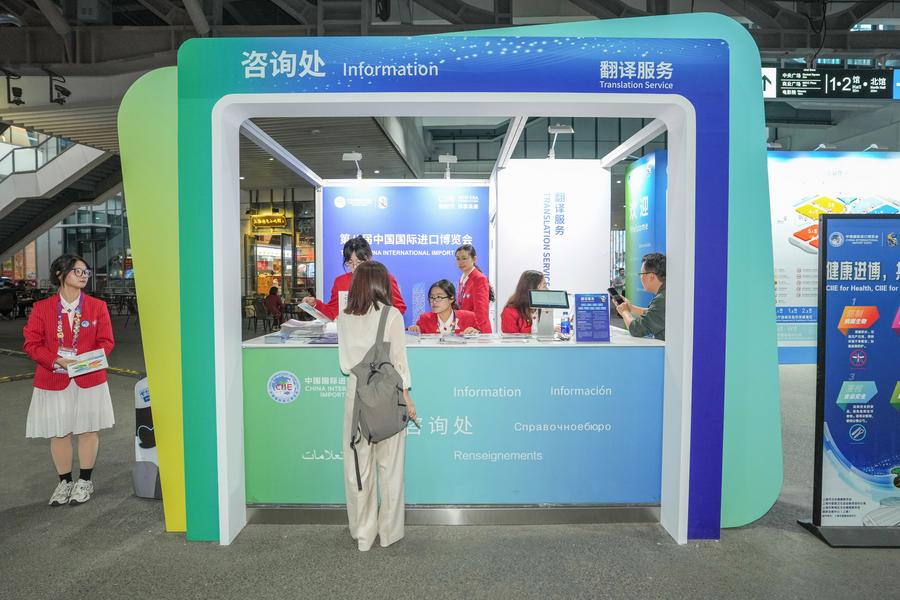 A visitor poses for a photo at the China Pavilion of the eighth China International Import Expo (CIIE) in east China's Shanghai, Nov. 5, 2025. (Xinhua/Tian Weiwei)Visitors try Thai-style massage at the Thailand Pavilion of the eighth China International Import Expo (CIIE) in east China's Shanghai, Nov. 5, 2025. (Xinhua/Wang Zecong)Actors perform dance at the Rwanda Pavilion of the eighth China International Import Expo (CIIE) in east China's Shanghai, Nov. 5, 2025. (Xinhua/Wang Zecong)This photo taken on Nov. 5, 2025 shows the Intelligent Industry and Information Technology exhibition area during the eighth China International Import Expo in east China's Shanghai. (Xinhua/Wang Jingqiang)Exhibitors make foods at the Food and Agricultural Products exhibition area of the eighth China International Import Expo (CIIE) in east China's Shanghai, Nov. 5, 2025. (Xinhua/Fan Yuqing)A visitor selects plush toys at the Consumer Goods exhibition area of the eighth China International Import Expo (CIIE) in east China's Shanghai, Nov. 5, 2025. (Xinhua/Lu Peng)Exhibits are pictured in the booth of Karcher at the Intelligent Industry & Information Technology exhibition area of the eighth China International Import Expo (CIIE) in east China's Shanghai, Nov. 5, 2025. (Xinhua/Wang Jingqiang)A visitor tries a haptic controller prototype at the Consumer Goods exhibition area of the eighth China International Import Expo (CIIE) in east China's Shanghai, Nov. 5, 2025. (Xinhua/Wang Jingqiang)An exhibitor demonstrates a humanoid robot at the Intelligent Industry and Information Technology exhibition area during the eighth China International Import Expo in east China's Shanghai, Nov. 5, 2025. (Xinhua/Wang Jingqiang)People visit a booth showcasing jewelry at the Consumer Goods exhibition area of the eighth China International Import Expo (CIIE) in east China's Shanghai, Nov. 5, 2025. (Xinhua/Chen Haoming)Exhibitors promote products via live-streaming at the Food and Agricultural Products exhibition area of the eighth China International Import Expo (CIIE) in east China's Shanghai, Nov. 5, 2025. (Xinhua/Du Xinyi)Volunteers work at an information booth at the eighth China International Import Expo (CIIE) in east China's Shanghai, Nov. 5, 2025. (Xinhua/Ren Pengfei)This photo taken on Nov. 5, 2025 shows a view of the media center of the eighth China International Import Expo (CIIE) in east China's Shanghai. (Xinhua/Lu Peng)■