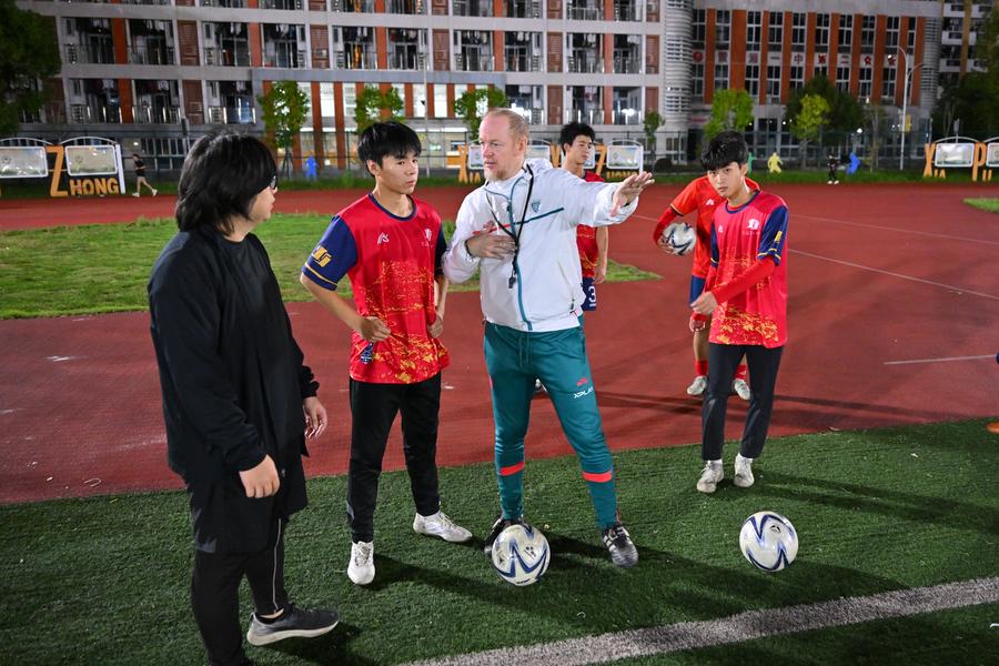 FUZHOU, Nov. 5 (Xinhua) -- Max Capriolo, who once helped nurture Italy internationals Moise Kean and Alessandro Buongiorno, now walks the training grounds of schools in Xiapu, bringing his Serie A experience to young players in the southeast Chinese coastal county in Fujian Province.