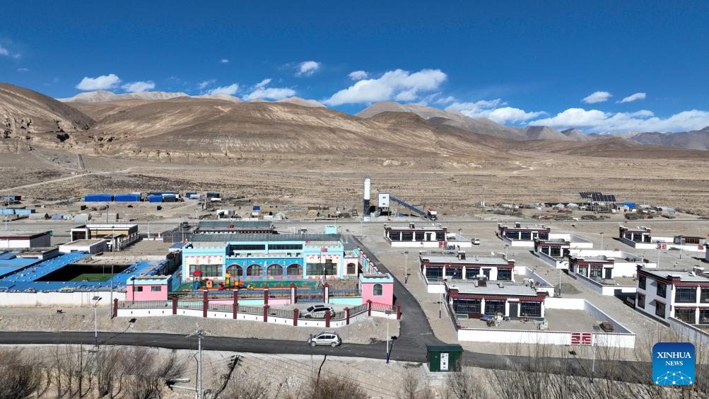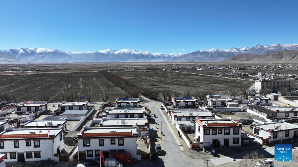 A drone photo taken on Nov. 12, 2025 shows the reconstructed houses that have been delivered to residents at Yejiang Village of Dingri County, Xigaze City, southwest China's Xizang Autonomous Region. In early January, a 6.8-magnitude earthquake struck Dingri County in the city of Xigaze, leveling thousands of houses.