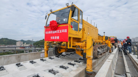 Track laying of Wenling-Yuhuan section of Hangzhou-Taizhou high-speed railway kicks off in E China