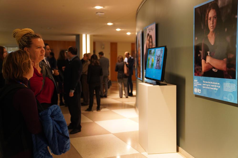 10月20日,在位于纽约的联合国总部,人们参观“共栖生命,共享未来”庆祝联合国成立80周年全球图片展。