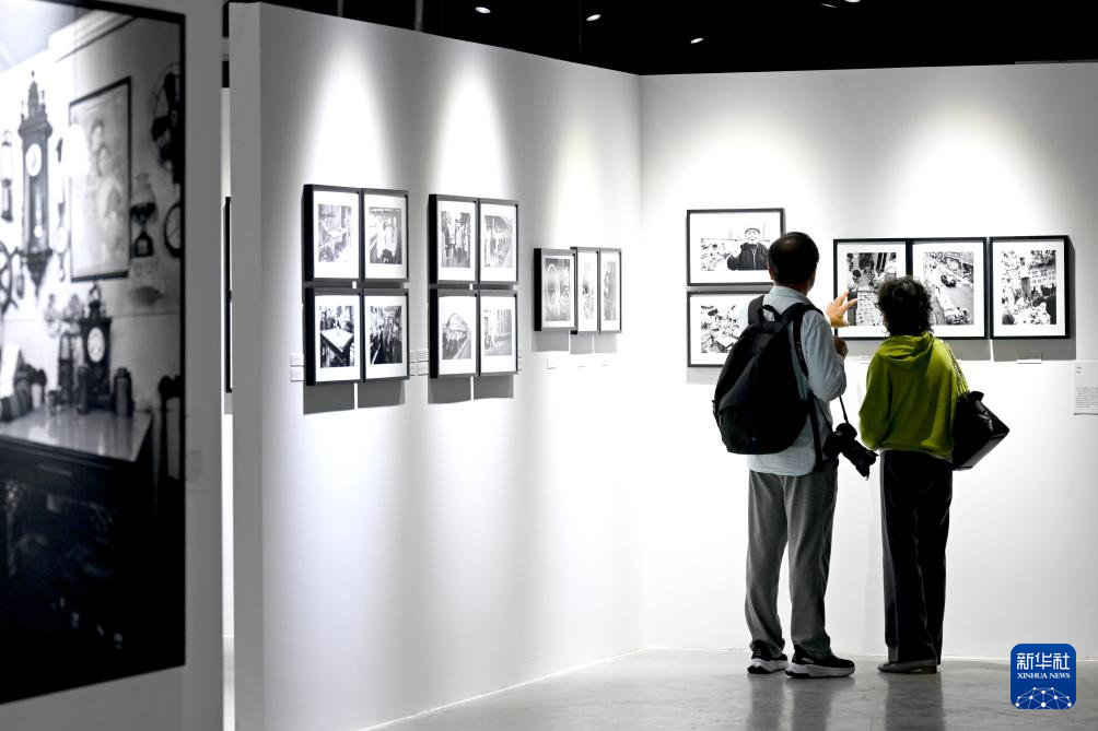 11月12日,观众在2024上海国际摄影节参展照片前驻足观看。