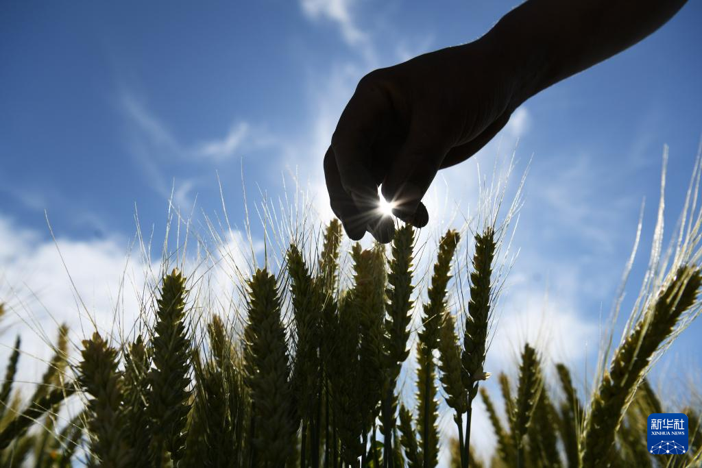 农户在云南省丽江市玉龙纳西族自治县黄山街道的麦田里查看小麦长势。新华社发(赵庆祖摄)