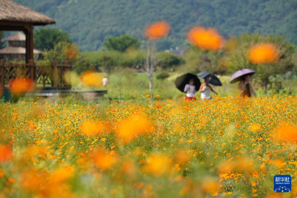 10月18日,游客在浙江省乐清市清江镇北塘村赏花拍照。