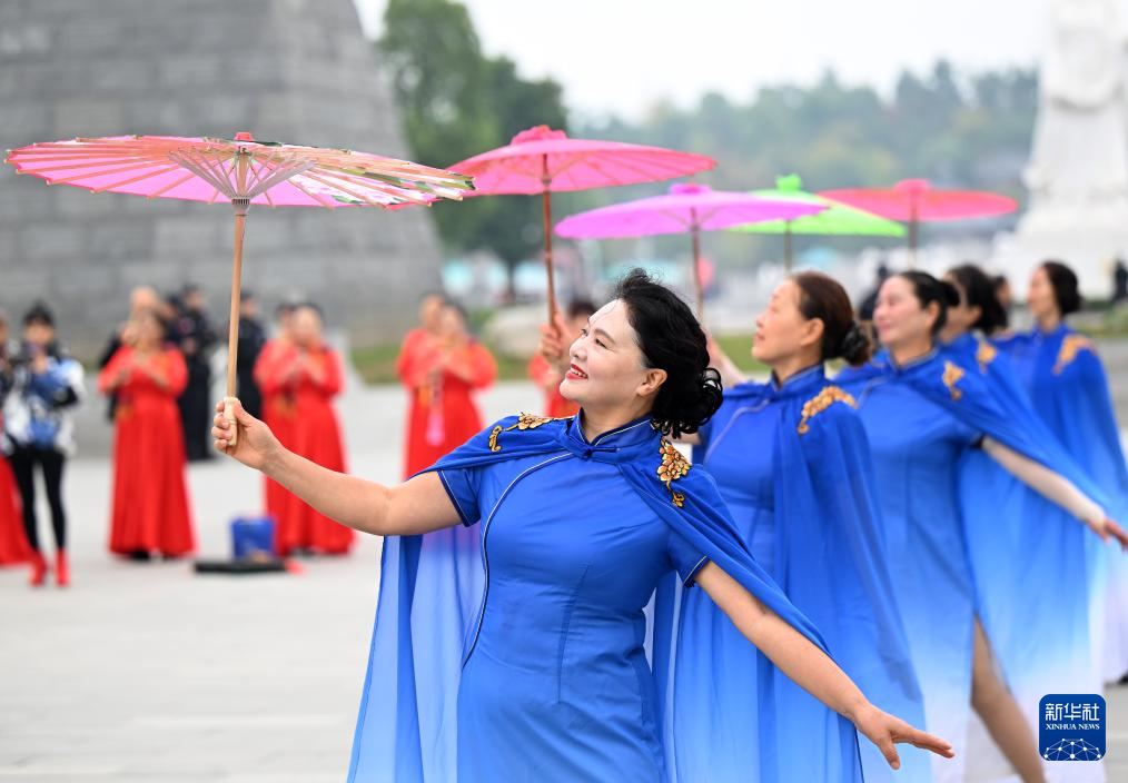 10月29日,民间艺人在浙江省湖州市德清县第十届舞阳侯会非遗巡游活动上进行民俗表演,庆祝重阳节。