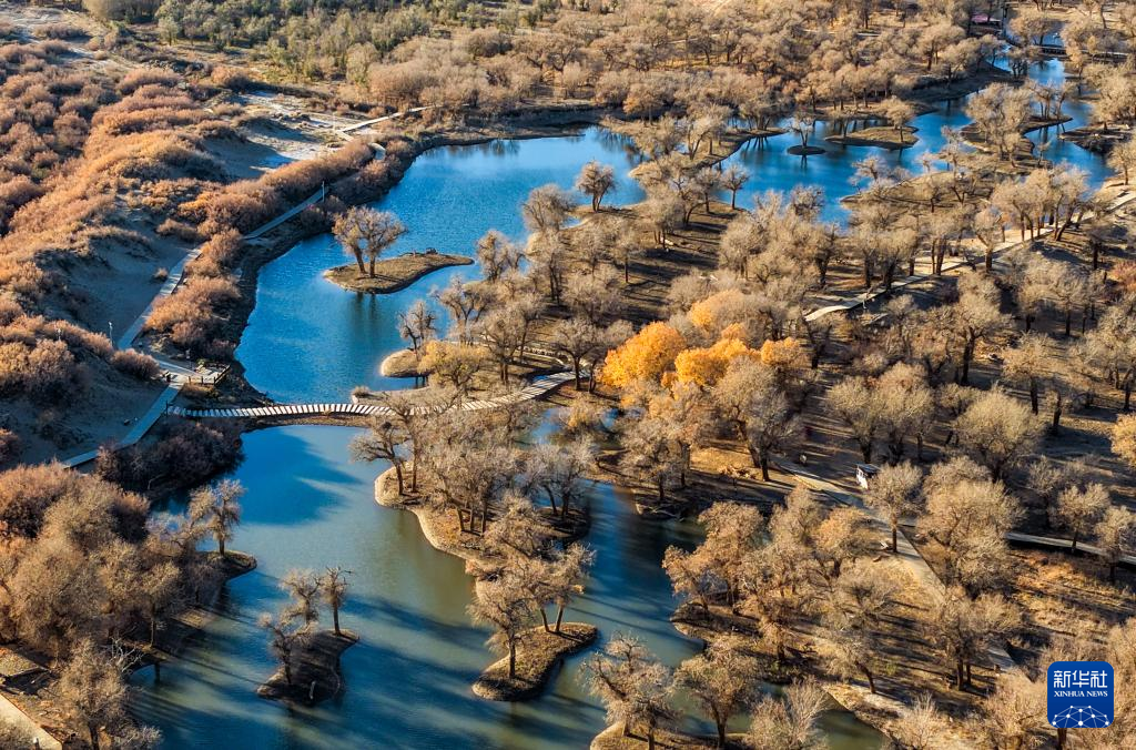 这是10月30日在内蒙古额济纳旗拍摄的胡杨林(无人机照片)。