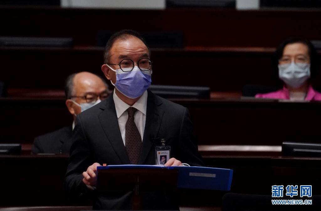 4月14日,香港特區(qū)政府政制及內(nèi)地事務(wù)局局長曾國衛(wèi)在立法會會議上。 新華社記者 呂小煒攝