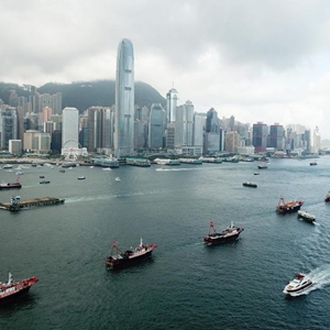 維多利亞港中,上百艘插滿旗幟的漁船緩緩巡游,宛如長龍,蔚為壯觀。尖沙咀碼頭,眾多香港市民唱起國歌,舞動國旗、區(qū)旗,向游弋的漁船致意。船上、岸上,歡呼聲此起彼伏。