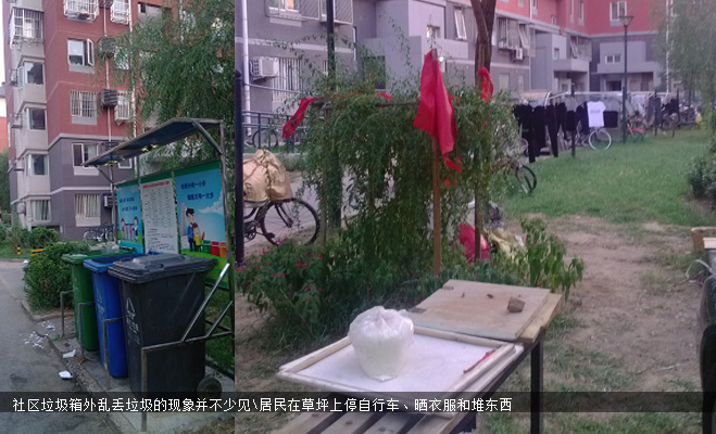 美和園的各個方向有多個進出口,小區安保方面管理較松,記者很輕松就在社區中間穿行,一路發現路邊偶有垃圾,車道上停車并不很規范,而社區樓棟間的草坪上也出現亂曬衣物和亂堆東西的現象。據小區內的業主爆料,美和園發生盜竊事件的頻率略高,大到停在社區樓下的電動車,小到家里的小東西,一般夜間小偷進來和出去都一樣方便,居民對記者表示無奈,“反映給物業也不管什么用”。