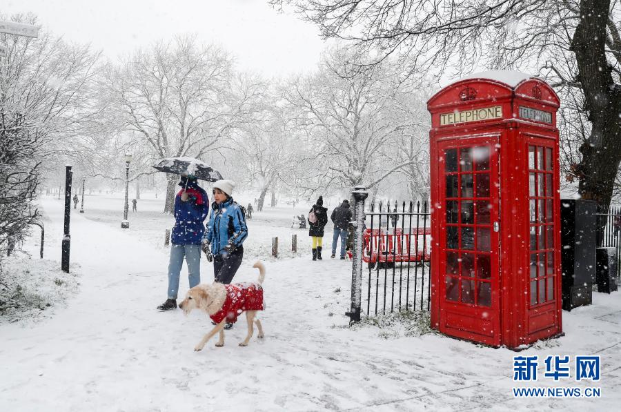 1月24日,人們?cè)谟?guó)倫敦的大雪中行走。當(dāng)日,英國(guó)倫敦迎來(lái)降雪。新華社記者韓巖攝
