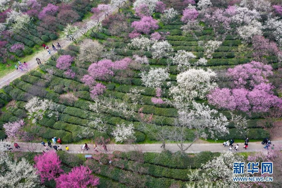 2月14日,游人在南京梅花山賞花(無人機照片)。新華社發(蘇陽 攝)