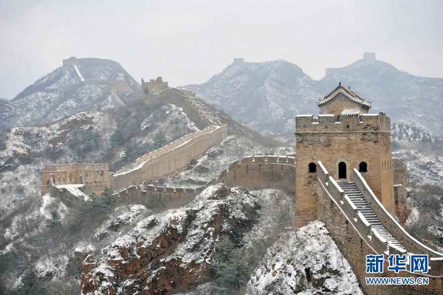 這是2月23日拍攝的金山嶺長城雪景。受冷空氣影響,河北省承德市灤平縣當日出現降雪天氣。雪后的金山嶺長城銀裝素裹,美如畫卷。新華社發(王立群 攝)