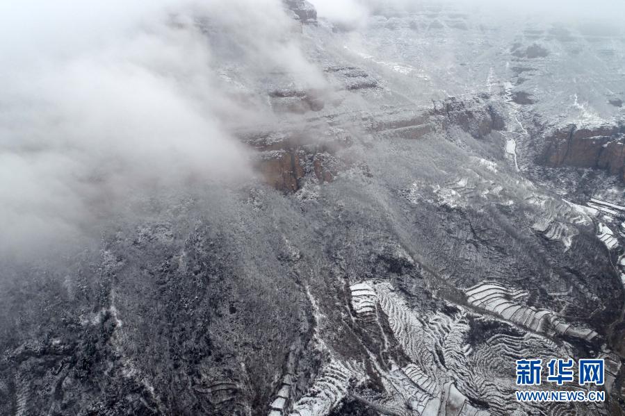 連日來,河北省沙河市西部山區出現降雪天氣,白雪覆蓋的梯田宛如一幅水墨畫。
