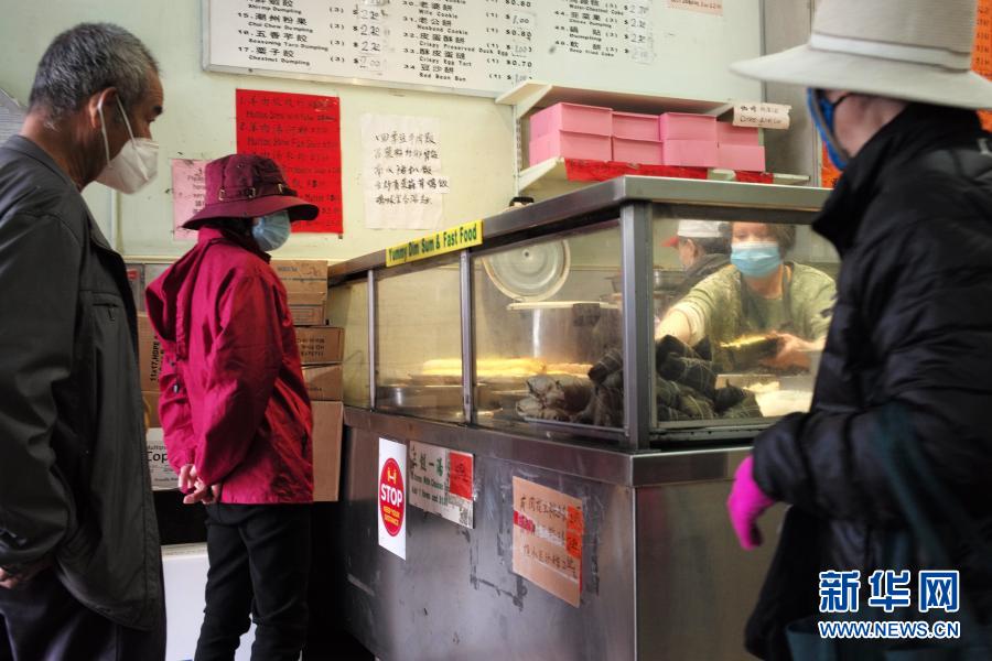 3月3日,人們在美國加利福尼亞州舊金山唐人街一家餐館內購買餐食。新華社記者 吳曉凌 攝