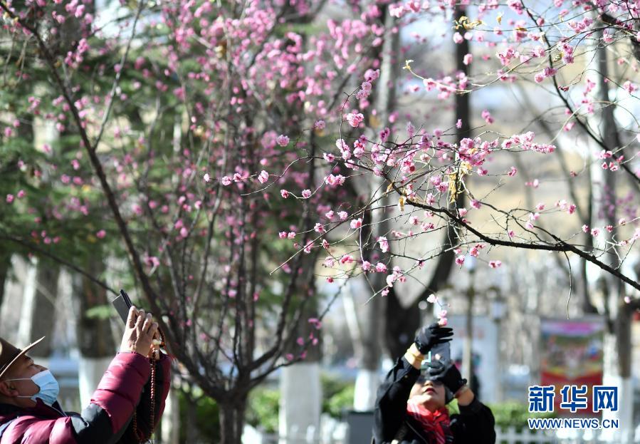 3月4日,人們?cè)诶_龍王潭公園賞花、拍照。