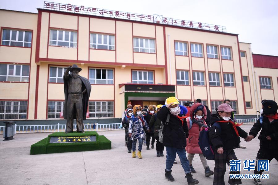 3月16日,索加鄉寄宿小學的一些孩子放學回家。新華社記者 張宏祥 攝