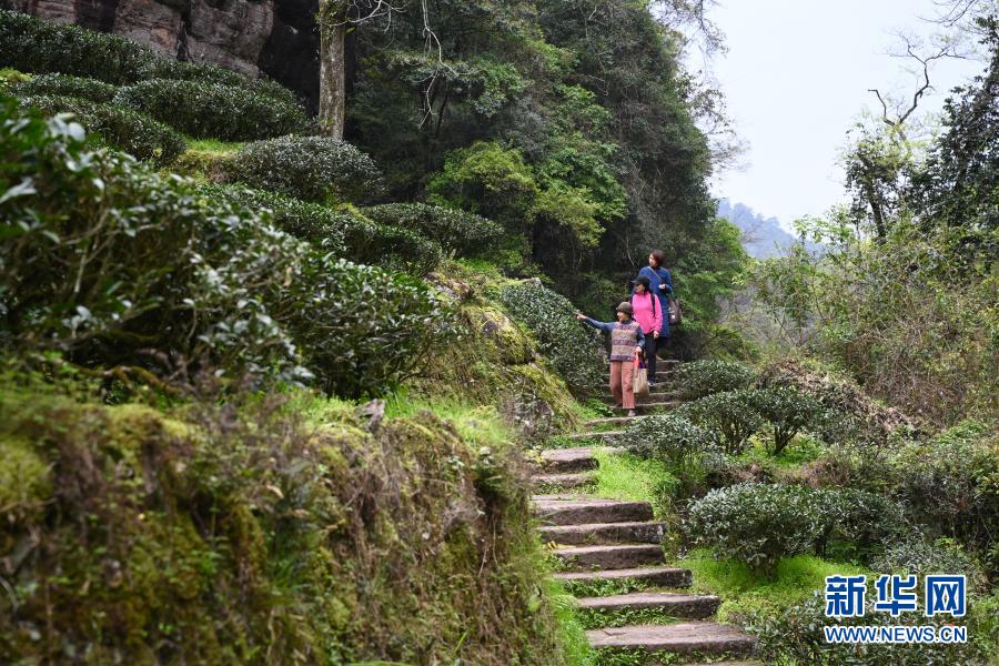 3月23日,參觀者在武夷山茶園參觀游覽。