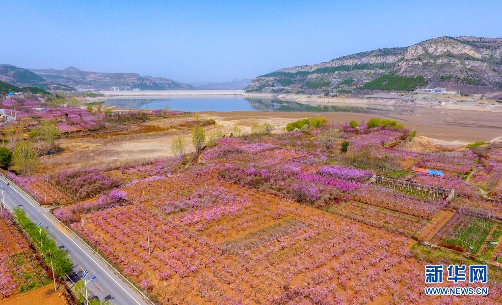 近日,位于山東省濟南市仲宮街道的大片桃園進入盛花期,漫山遍野的桃花在春風中爭相綻放。