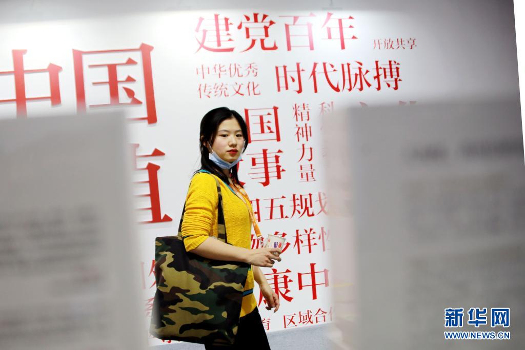 3月31日,一名觀眾在慶祝建黨100周年主題圖書展區參觀。