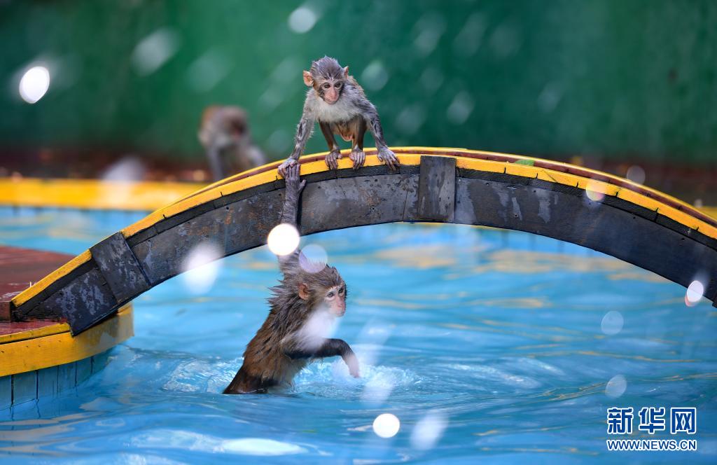 獼猴戲水