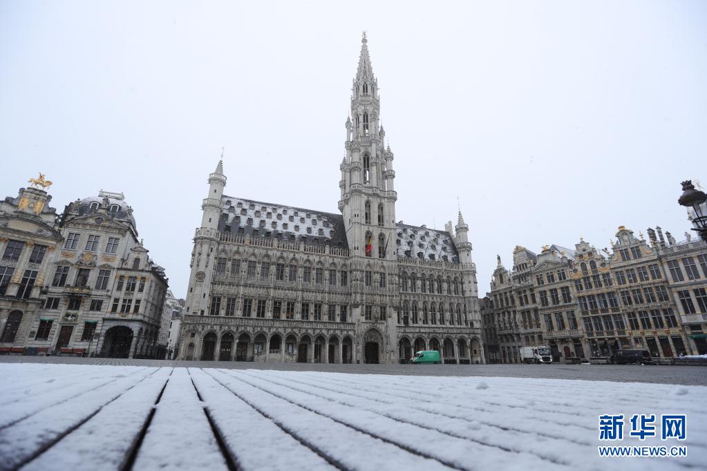 比利時近日迎來春雪,首都布魯塞爾銀裝素裹,景色別致。