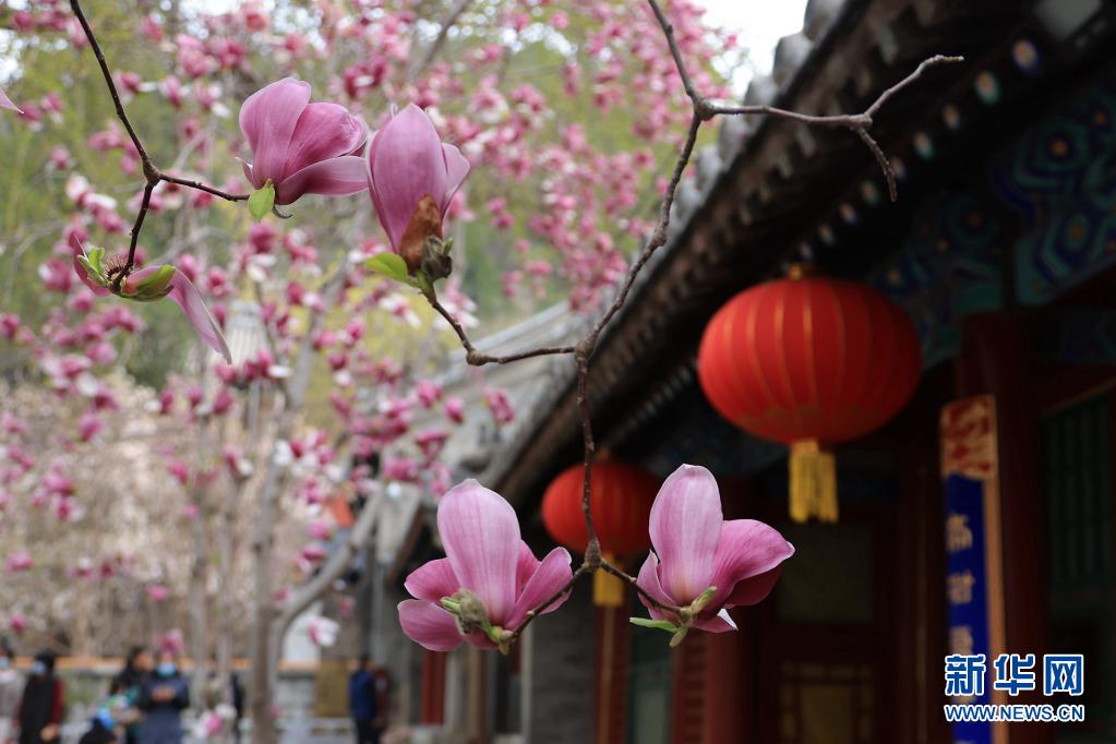 4月10日在北京潭柘寺拍攝的盛開的玉蘭花。新華社發(李學忠 攝)
