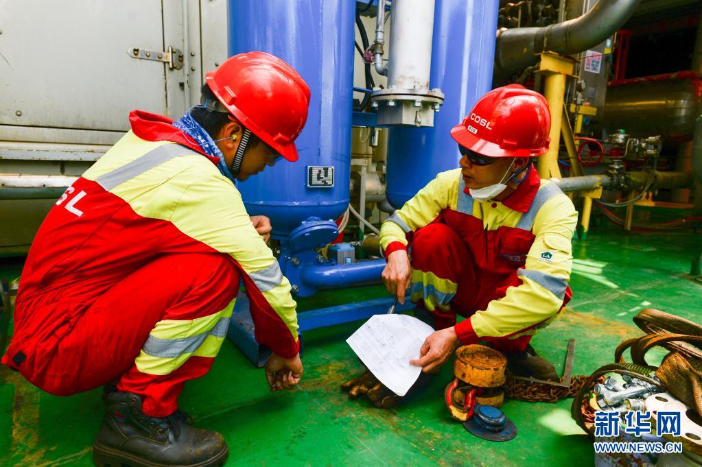 4月25日,工人在中國海油樂東15-1氣田作業。