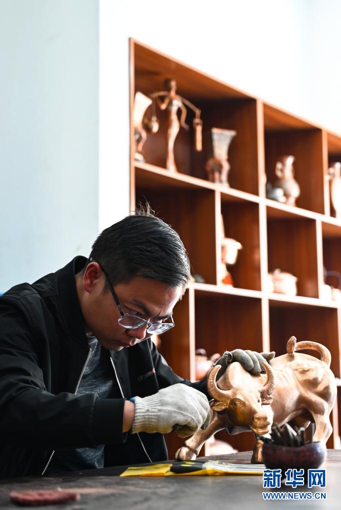 地處滇東北、烏蒙山腹地的云南會澤縣流傳著具有300多年歷史的斑銅制作工藝。斑銅工藝復(fù)雜,要采用高品位的銅為原料,經(jīng)過20余道工序制作而成。產(chǎn)品“妙在有斑,貴在渾厚”,風(fēng)格獨樹一幟。33歲的張偉是會澤“張氏斑銅”的第十三代傳人。自幼深受地域文化和家庭熏陶的他,大學(xué)畢業(yè)后,返鄉(xiāng)從事斑銅制作工作。在會澤古城的“銅匠街”,張偉創(chuàng)辦了斑銅傳習(xí)館,不斷研發(fā)斑銅新產(chǎn)品、傳承著這項非遺技藝。“斑銅是一種情感、一種文化,希望在我們這代人的努力下能夠更好地將它傳承下去,讓更多人了解斑銅的獨特魅力。”張偉說。